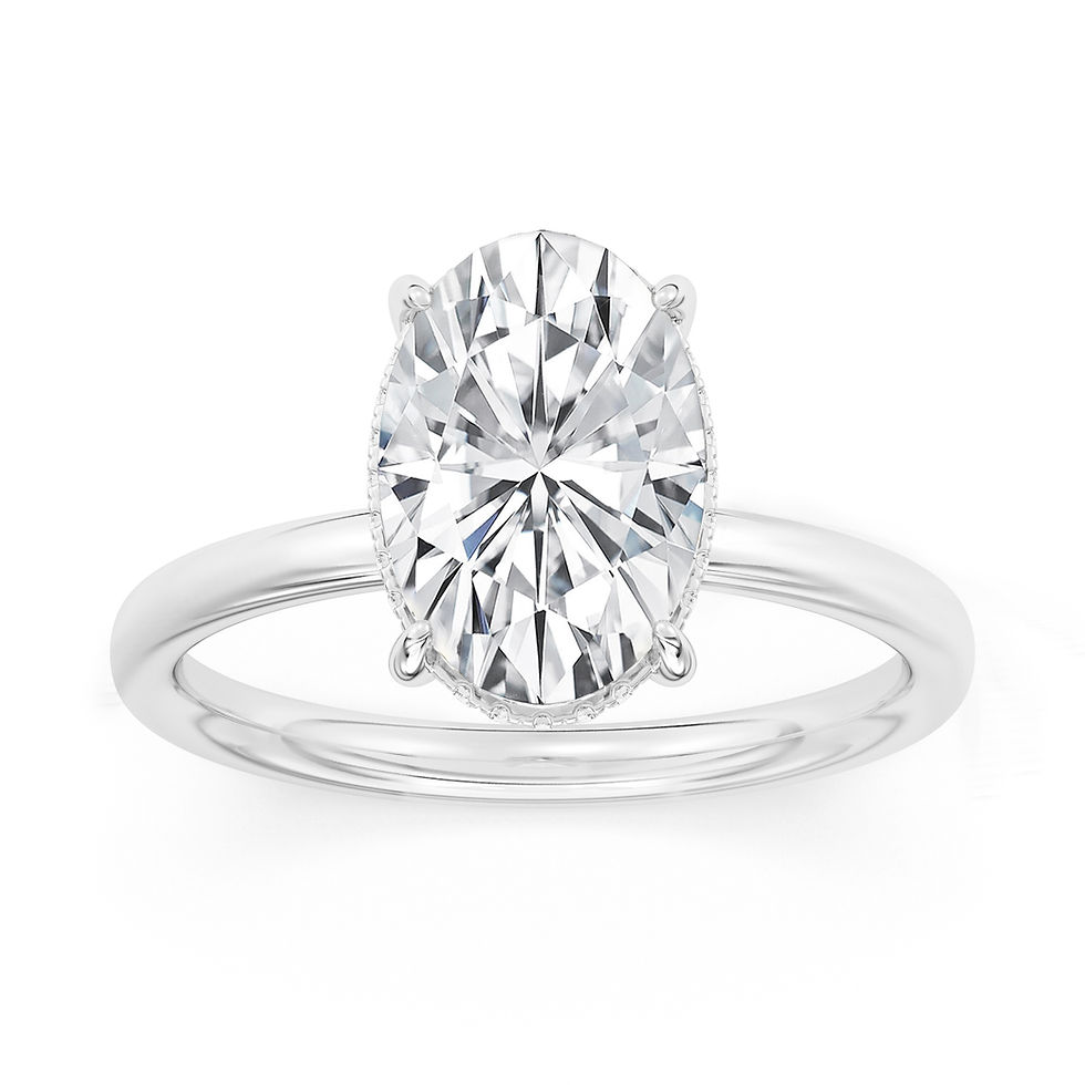 14k White Gold Lab-Grown Accented Crown Oval Diamond Engagement Ring